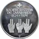 Switzerland symbol on top. Italian wording for `Swiss company of Police.` Sesquicentennial date 1824 to 1974. Three identical right hands symbolizing the Rütlischwer. Engravers and Silver purity stamp [0.900] |