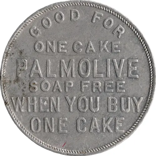 | Obverse lettering | GOOD FOR ONE CAKE PALMOLIVE SOAP FREE WHEN YOU BUY ONE CAKE |