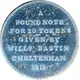 Reverse lettering A POUND NOTE FOR 20 TOKENS GIVEN BY WILLm BASTIN 1811