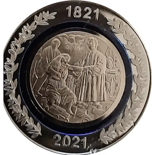 | Reverse lettering | 200 ΧΡΟΝΙΑ ΜΕΤΑ ΤΗΝ ΕΠΑΝΑΣΤΑΣΗ ΕΛΛΑΔΑ 2021 (Translation: 200 YEARS AFTER THE REVOLUTION HELLAS 2021) |