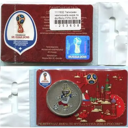 | Obverse description | The official FIFA World Cup mascot for the 2018 tournament, a wolf named Zabivaka (`the one who scores` in Russian). Representing an anthropomorphic wolf with brown and white wool T-shirt with the words `RUSSIA 2018` and orange sport glasses. The combination of white, blue and red T-shirt and shorts are the national colors of the Russian team. |