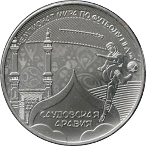 | Obverse lettering | ЧЕМПИОНАТ МИРА ПО ФУТБОЛУ FIFA TM САУДОВСКАЯ АРАВИЯ (Translation: FIFA World Cup Saudi Arabia) |