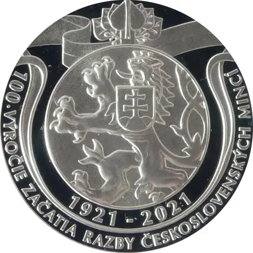 | Reverslegende | 100. výročie začatia razby československých mincí (Translation: 100th Anniversary of the first minting of Czechoslovak coins.) |