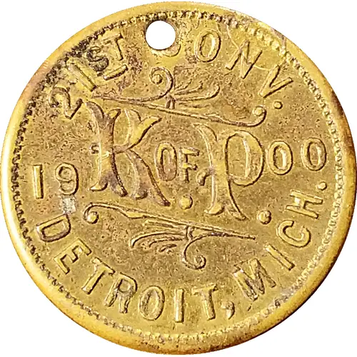 | Obverse lettering | 21ST CONV. 19 K. OF P. 00 DETROIT, MICH. |