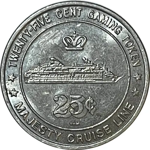 | Obverse lettering | TWENTY-FIVE CENT GAMING TOKEN 25¢ ★ ★ MAJESTY CRUISE LINE ★ ★ |