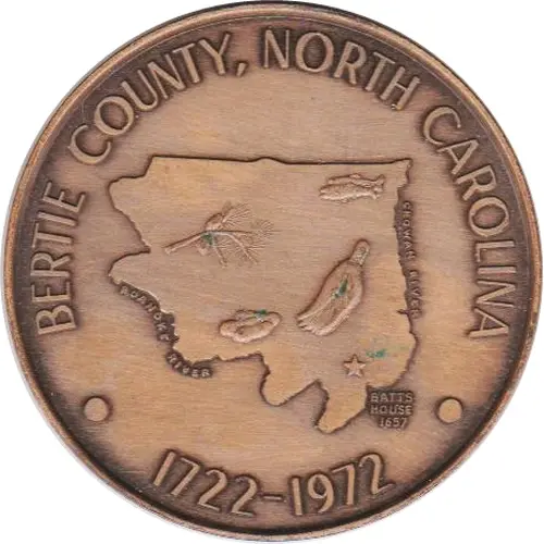| Obverse lettering | BERTIE COUNTY, NORTH CAROLINA ROANOKE RIVER CHOWAN RIVER BATTS HOUSE 1722-1972 |