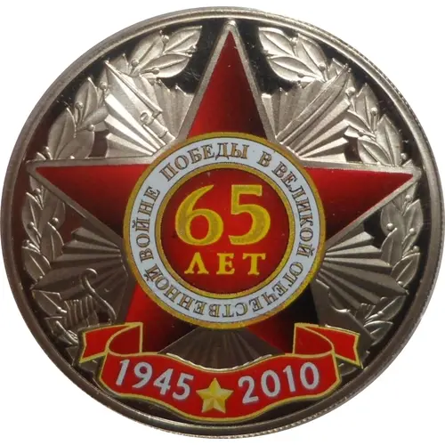 | Надписи аверса | 65 ЛЕТ ПОБЕДЫ В ВЕЛИКОЙ ОТЕЧЕСТВЕННОЙ ВОЙНЕ 1945 * 2010 (Translation: 65 years of Victory in the Great Patriotic War 1945 * 2010) |