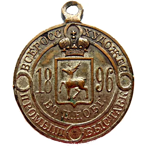 | Obverse lettering | ВСЕРОСС ХУДОЖЕС 18 96 ВЪ Н. НОВГ. ПРОМЫШ ВЫСТАВК (Translation: All-Russian Industrial and Art Exhibition 1896) |