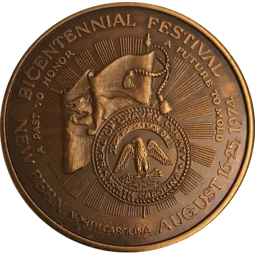 | Obverse lettering | BICENTENNIAL FESTIVAL NEW BERN NORTH CAROLINA AUGUST 16-25, 1974 A PAST TO HONOR/A FUTURE TO MOLD SEAL OF CRAVEN COUNTY NORTH CAROLINA |
