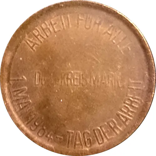 | Obverse lettering | Arbeit für Alle Der Kreismarkt 1. Mai 1984 - Tag der Arbeit (Translation: Work for all The lokal market first of may 1984 - Day of Work) |