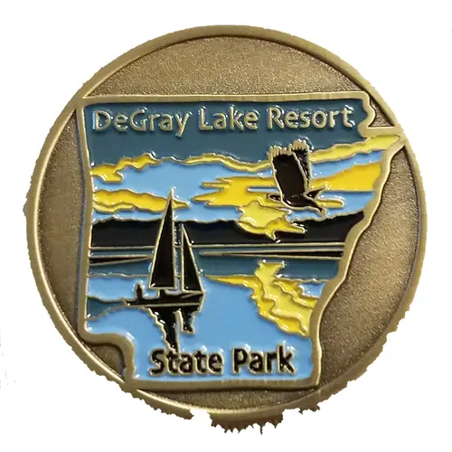 | Obverse description | Outline of the State of Arkansas with a lake. On the lake is a sailboat and an Eagle flying above. |