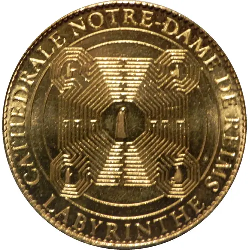 | Aversbeschreibung | Text in periphery. In the center, representation of the labyrinth of the cathedral of Rheims, French commune of the department of the Marne, region Grand-Est. |