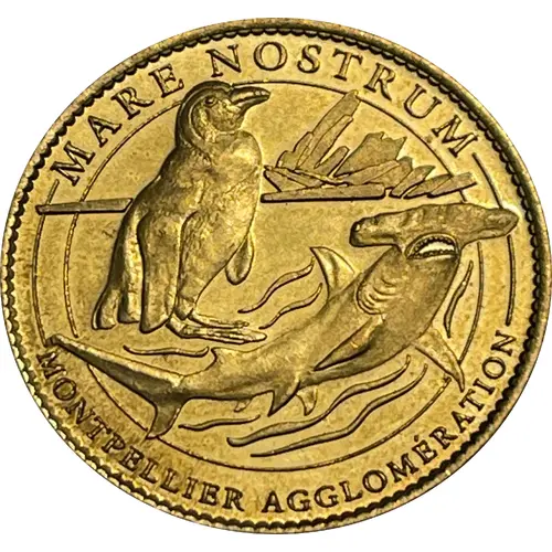Representation of a penguin and a hammerhead shark at the aquarium in Montpellier, a French commune in the Hérault department, Occitanie region. |