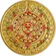 | Obverse description | Golden Aztec calendar with colored details in red and green. |