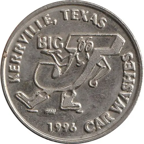 | Obverse lettering | KERRVILLE, TEXAS BIG J RWM 1996 CAR WASHES |