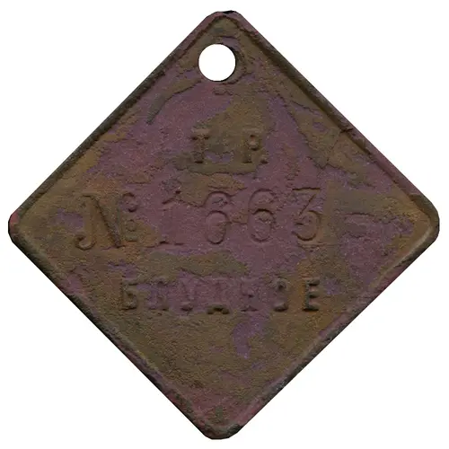 | Obverse lettering | Т. Р. № 1663 БЛУДНОЕ (Translation: T. R. (Peat mining) № 1663 Bludnoye) |