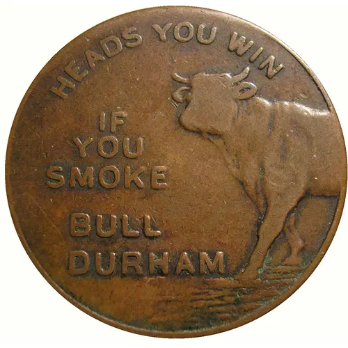 | Obverse lettering | HEADS YOU WIN IF YOU SMOKE BULL DURHAM |
