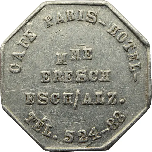 | Legenda do anverso | CAFÉ PARIS-HOTEL- Mᴹᴱ ERESCH ESCH/ALZ. TÉL. 524-88 |