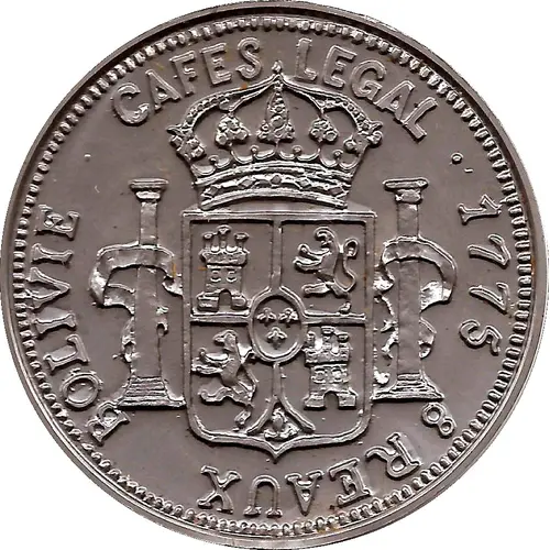 | Obverse description | Cafes legal - 1775 - bolivia 8 reaux |