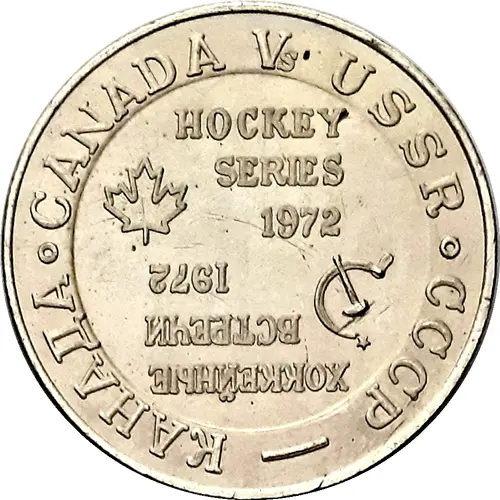 | Obverse lettering | CANADA Vs. U.S.S.R. HOCKEY SERIES 1972 СССР - КАНАДА ХОККЕЙНЫЕ ВСТРЕЧИ 1972 |