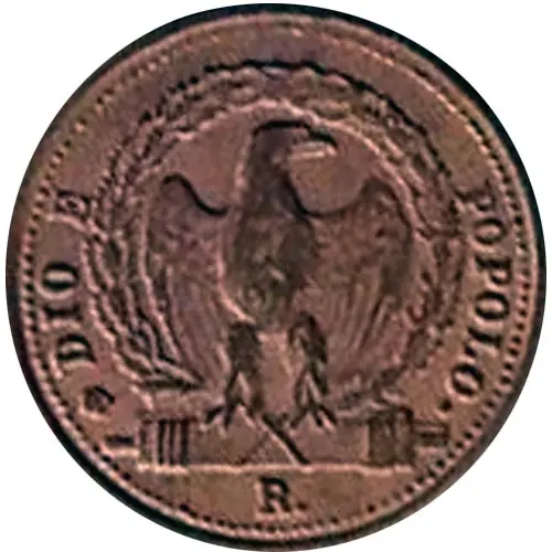 | Mô tả mặt trước | Eagle within wreath, standing on fasces. |