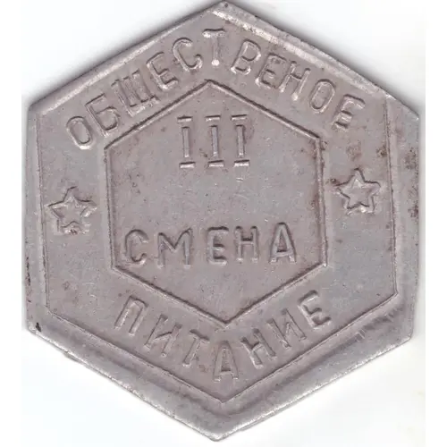 | Obverse lettering | ОБЩЕСТВЕННОЕ III СМЕНА *ПИТАНИЕ* (Translation: Catering 3 shifts) |