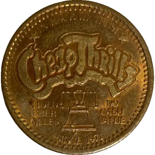 | Obverse lettering | IN ROCK WE TRUST Cheap Thrills VIDEO UBER ALLES NO CASH VALUE SINCE 1974 (Translation: video about everything) |