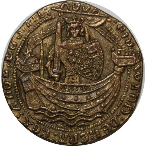 | Obverse description | Crowned Edward, in chain mail, standing in a nave in profile, holding the sword high in his right hand and in his left hand the quartered shield of France and England |