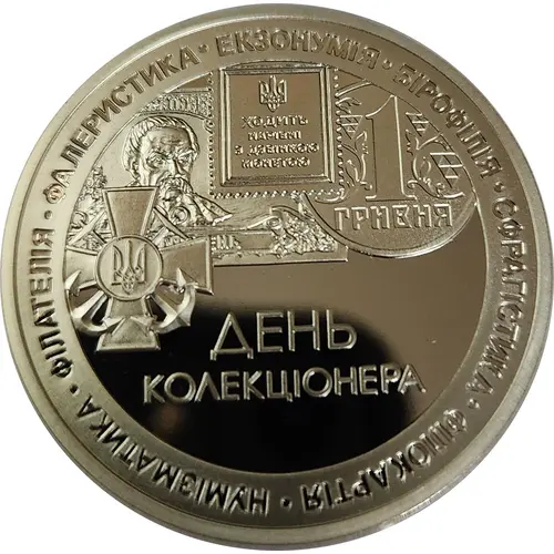 | Obverse lettering | НУМІЗМАТИКА • ФІЛАТЕЛІЯ • ФАЛЕРИСТИКА • ЕКЗОНУМІЯ • БІРОФІЛІЯ • СФРАГІСТИКА • ФІЛОКАРТІЯ • ДЕНЬ КОЛЕКЦІОНЕРА (Translation: NUMISMATICS • PHILATELY • PHALERISTICS • EXONUMIA • BREWERIANA • SIGILLOGRAPHY • DELTIOLOGY • COLLECTOR`S DAY) |