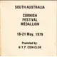 | Obverse lettering | CORNISH FESTIVAL WALTER WATSON HUGHES |