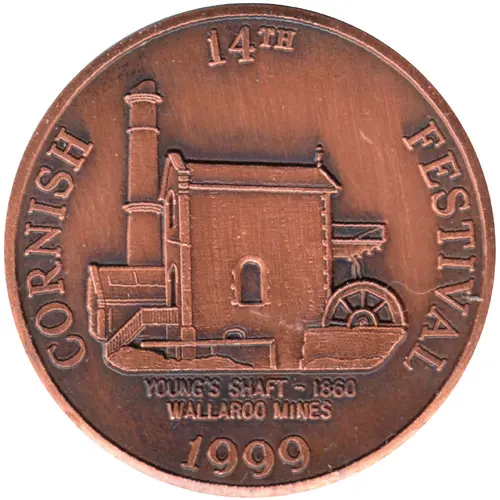 | Obverse lettering | CORNISH 14TH FESTIVAL 1999 YOUNG’s SHAFT – 1860 WALLAROO MINES |
