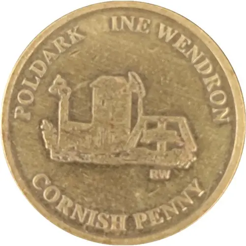 Obverse lettering POLDARK MINE WENDRON RW CORNISH PENNY