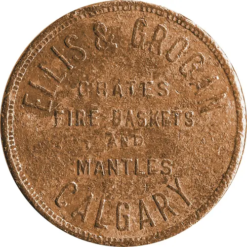 | Obverse lettering | ELLIS & GROGAN GRATES FIRE BASKETS AND MANTLES CALGARY |