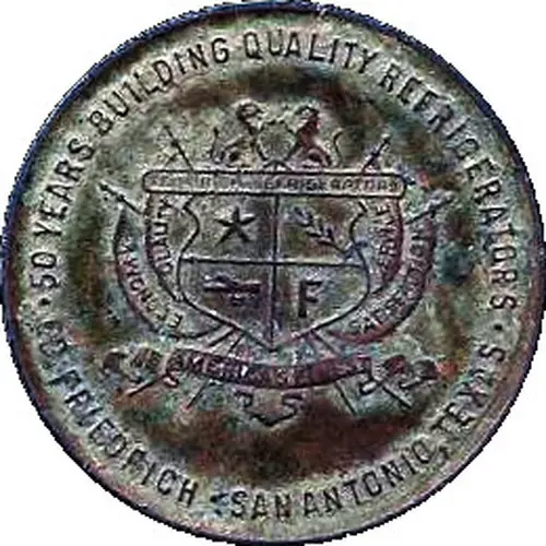 | Obverse lettering | 50 Years Building Quality Refrigerators Ed Friedrich San Antonio, Texas |