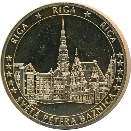 | Opschrift voorzijde | RIGA ★ RIGA ★ RIGA ★★★★★ SVETA PETERA BAZNICA ★★★★★ |