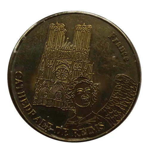 The Smiling Angel at the foot of Reims Cathedral, a French commune in the Marne department, Grand-Est region. |