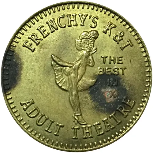 | Obverse lettering | FRENCHY’S K&T THE BEST IN X ADULT THEATRE |