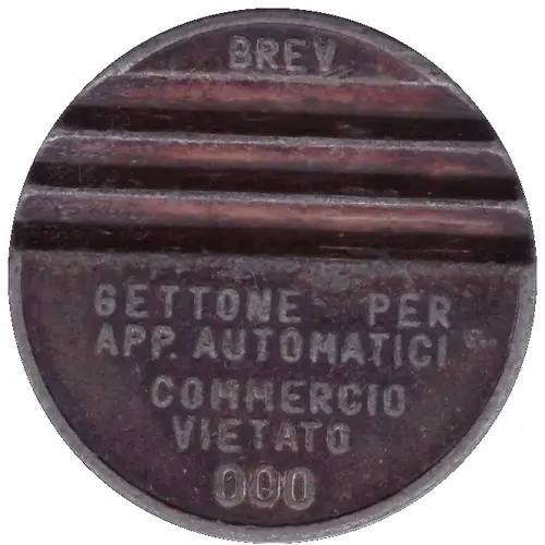 | Obverse lettering | BREV. GETTONE PER APP. AUTOMATICI COMMERCIO VIETATO 000 |