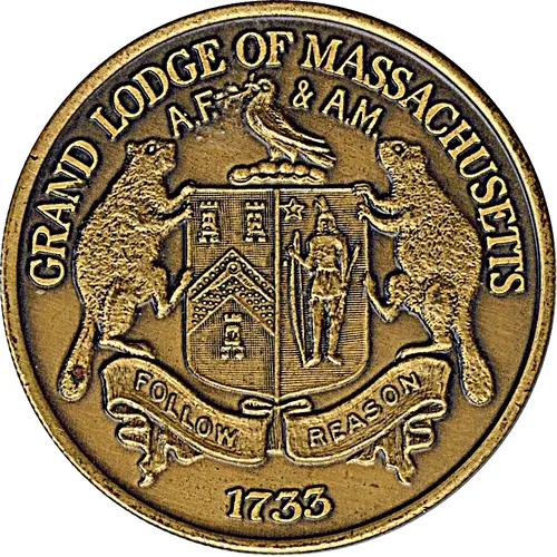 | Obverse lettering | GRAND LODGE OF MASSACHUSETTS A.F. & A.M. FOLLOW REASON 1733 |