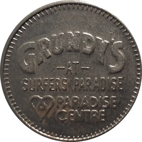 | Obverse lettering | GRUNDY`S -AT- SURFERS PARADISE PARADISE CENTRE |