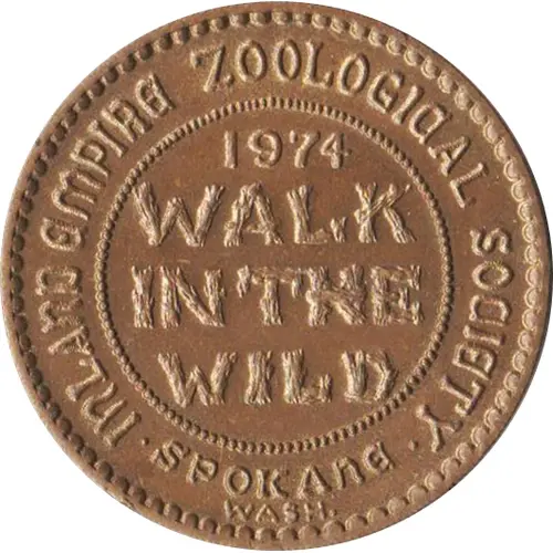 | Obverse lettering | INLAND EMPIRE ZOOLOGICAL SOCIETY 1974 WALK IN THE WILD SPOKANE WASH. |