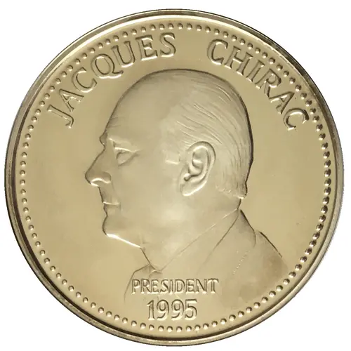 | توضیحات روی مدال | Bust of Jacques Chirac, President of the French Republic. Engraver`s signature in the collar. |