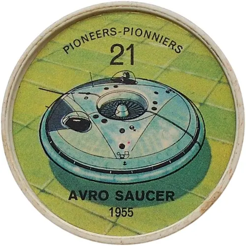 | Obverse lettering | PIONEERS - PIONNIERS 21 AVRO SAUCER 1955 |