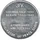 | Reverse lettering | JFK CONGRESS 1947-1953 SENATE 1953-1961 ASSASSINATED NOV. 22, 1963 ORIGINATOR OF PEACE CORPS |