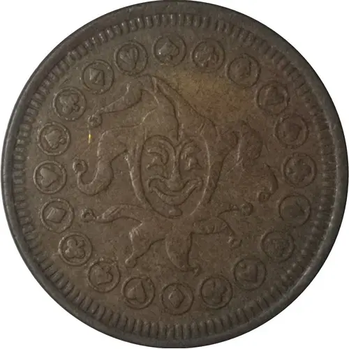 Ön yüz açıklaması Joker or Jester with hearts, diamonds, clubs and spades in a circle