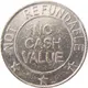 Outer circle consisting of three stars in the lower part and the inscription `NOT REFUNDABLE` in the upper part. The inner circle consists of a three-line inscription `NO CASH VALUE`. |