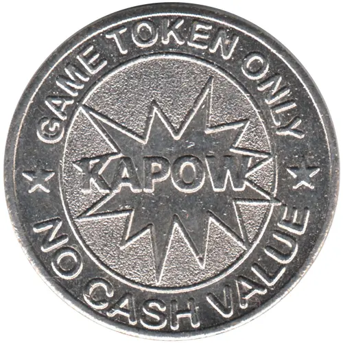 Opschrift voorzijde GAME TOKEN ONLY KAPOW * NO CASH VALUE *