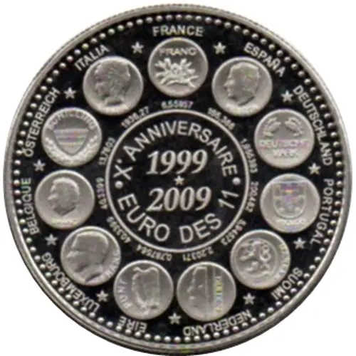 | Obverse lettering | 1999 - 2009 X ANNIVERSAIRE EURO des 11 |