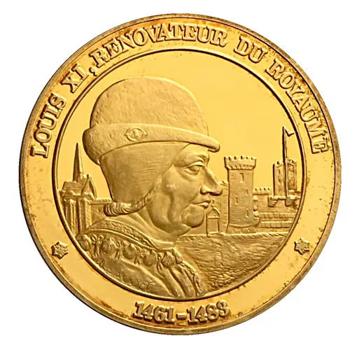| Obverse description | Bust turned to the right of Louis XI, King of France. In the background, a castle. |