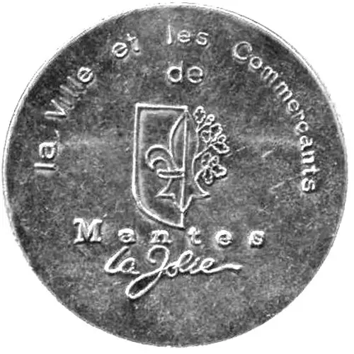 | Obverse lettering | La Ville et les Commerçants de Mantes la Jolie (Translation: The City and the Traders of Mantes la Jolie) |